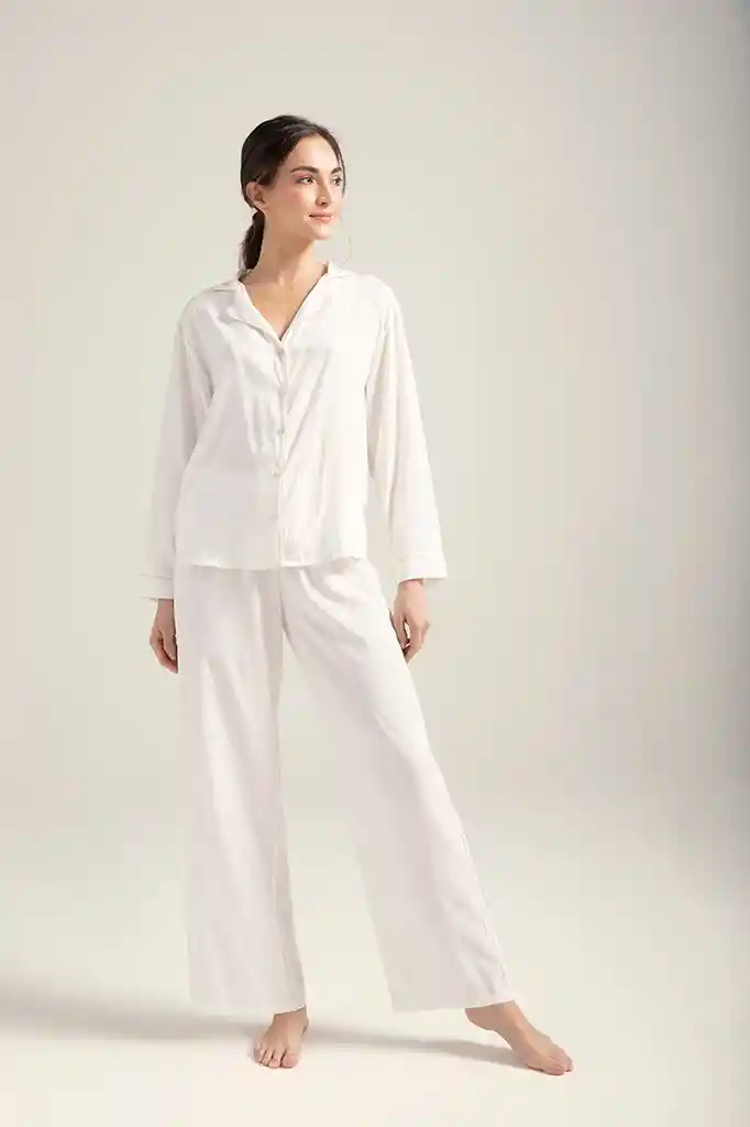 Pantalón Largo/ Camisa Con Botones Cuello Solapa Y Manga Larga 1530022Xl Off White Raya Dorada 100%Viscosa