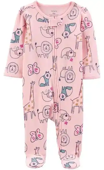 PIJAMA PARA NIÑA COLOR ROSA - DISEÑO ANIMALES SALVAJES - MANGA LARGA - IMPORTADA CARTERS