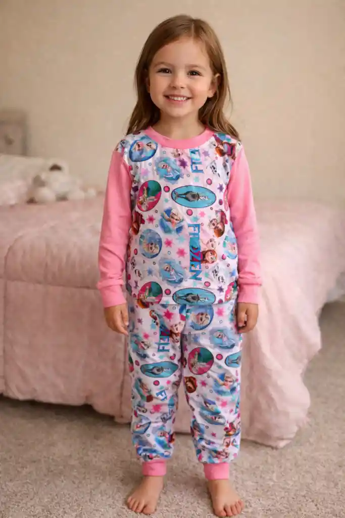Pijama Luminosa motivo Frozen Niña Pantalon mas camiseta manga larga . Talla 2 medida de largo del pantalón 54Cm
