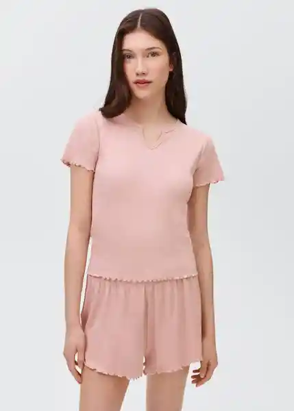 Camiseta de Manga Corta Cintura Elástica Ajustable Cuello de Pico Pack de 2 Pantalón Corto Tejido de Algodón - 87085937_81.