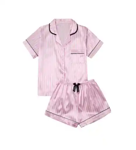 🌸 Pijama satinado a rayas rosa y blanco Dulzura y estilo para tus noches 💖. Este conjunto de dos piezas incluye una camisa de botones con cuello clásico y ribetes negros, y un short con pretina elástica y moño decorativo 🖤. Su tela satinada acaricia la piel con suavidad, mientras el diseño a rayas aporta un toque chic y relajado. ✨ Ideal para dormir con estilo o disfrutar de mañanas cómodas y coquetas. 🎀 Tela ligera | 🛌 Tacto sedoso | 💕 Perfecta para regalar Talla s-m