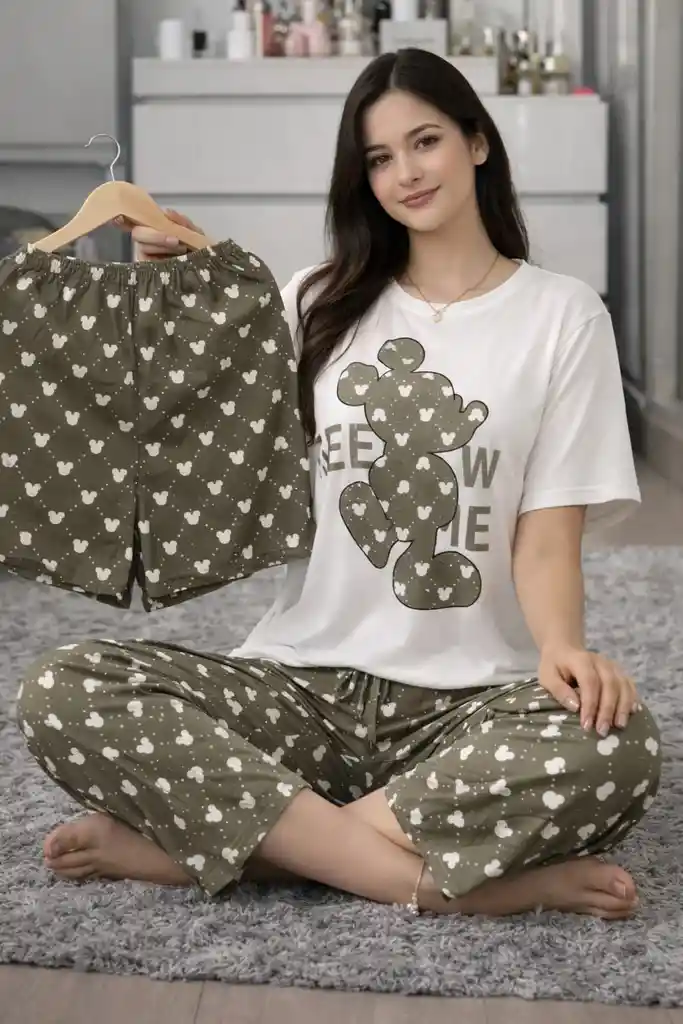 ✨ Pijama Set x3 Piezas MICKIE Comfort Soft 🛍️ Descripción que conquista Un set completo pensado para darte comodidad y versatilidad en todo momento. Incluye camiseta suelta + pantalón largo + short adicional, perfecto para adaptarte al clima y a tu rutina sin perder el estilo. 💖 ¿Qué obtienes al tenerlo? 3 piezas en 1 para combinar como quieras 🔥 Comodidad total con un diseño moderno y relajado Sensación ligera ideal para descansar o estar en casa 🌟 Calidad que se siente Tela suave, fresca y transpirable que cuida tu piel. Su material flexible permite un ajuste cómodo, siendo talla única, adaptándose fácilmente a diferentes cuerpos sin apretar. 👗 ¿Cómo usarlo? Con pantalón para mayor cobertura 🌙 Con short para días más cálidos ☀️ Ideal para dormir, descansar o disfrutar en casa 🛋️ 🚀 Entrega rápida Recíbelo en 30 a 50 minutos desde tu compra. 💬 Es práctico, bonito y súper cómodo. Tener tres opciones en un solo set lo hace perfecto para usar todos los días sin cansarte. 🛒 Pídelo ahora y vive la comodidad con estilo 💕