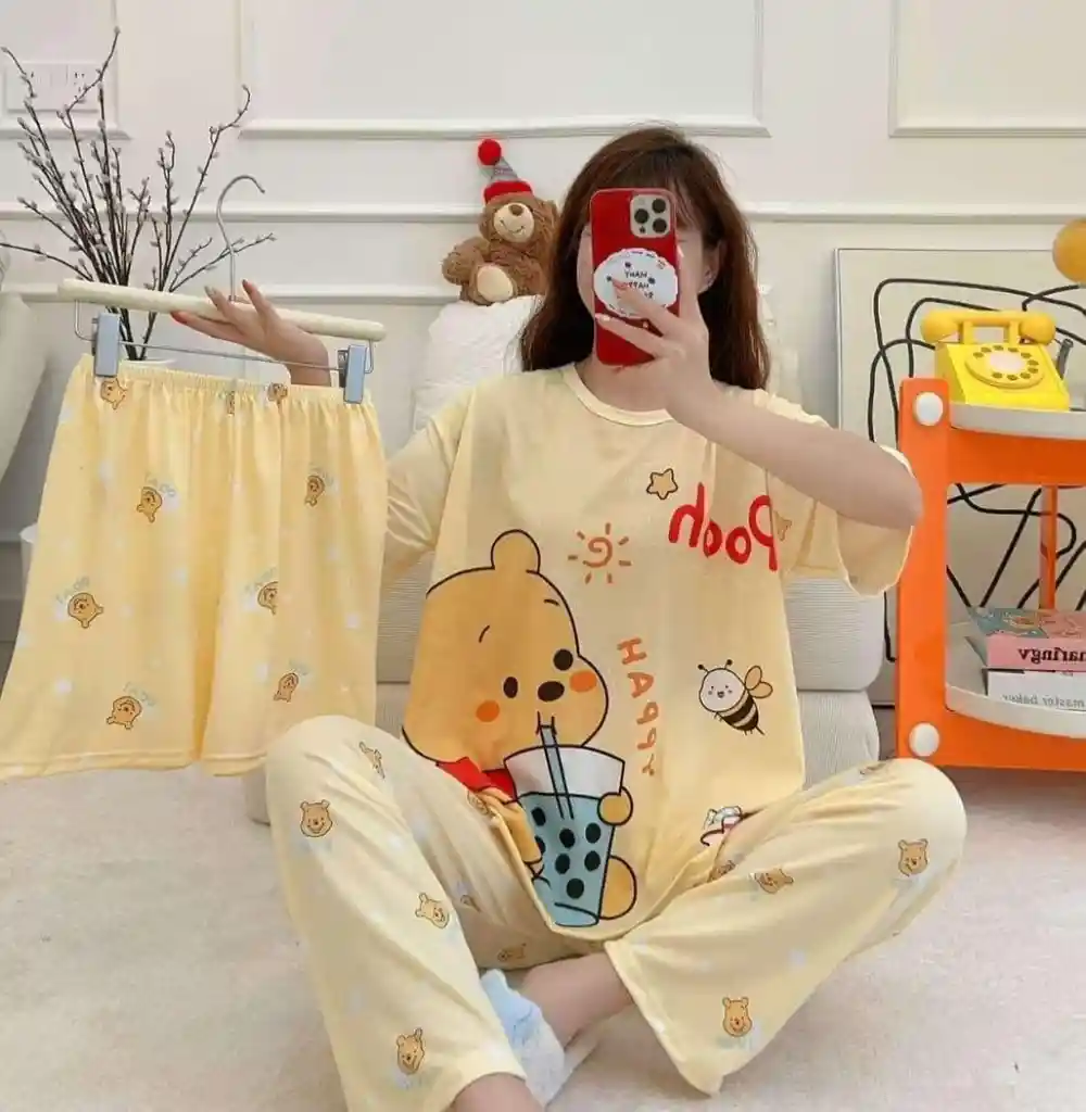 🌟 Pijama Mujer SET X3 Estampada Pooh Sweet Relax 🌟 🍯 Comodidad tierna que te acompaña día y noche Este set de pijama es todo lo que necesitas para sentirte cómoda, fresca y con un toque adorable. Confeccionado en tela suave tipo algodón, su diseño ligero y flexible se adapta perfectamente a tu cuerpo, siendo talla única ideal para distintos tipos de figura. 💛 ¿Qué obtienes al tenerlo? Máxima suavidad para descansar mejor Sensación fresca y ligera todo el día Un diseño tierno que mejora tu estado de ánimo Libertad de movimiento sin incomodidades 🌿 Calidad que enamora Tela transpirable, delicada con la piel y resistente al uso diario. Mantiene su forma y suavidad lavado tras lavado, convirtiéndose en tu favorito rápidamente. 👕 ¿Cómo usarlo? Perfecto para dormir, estar en casa, ver series o disfrutar un día relajado. Incluso puedes usar la camiseta con shorts o jeans para un look comfy casual. 🚀 Entrega express Recíbelo en 30 a 50 minutos después de tu compra.