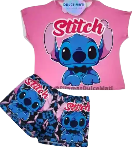 Pijama Short, blusa mangas Stich - Piel De Durazno, talla unica, sede hast la talla L