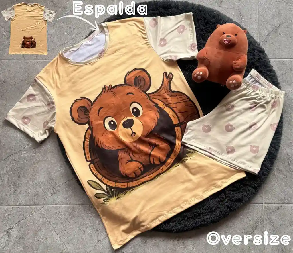 Hermosa Pijama dos piezas Blusón y short para dama de excelente calidad para dama TALLA UNICA Largo 79 cm Ancho 59 cm