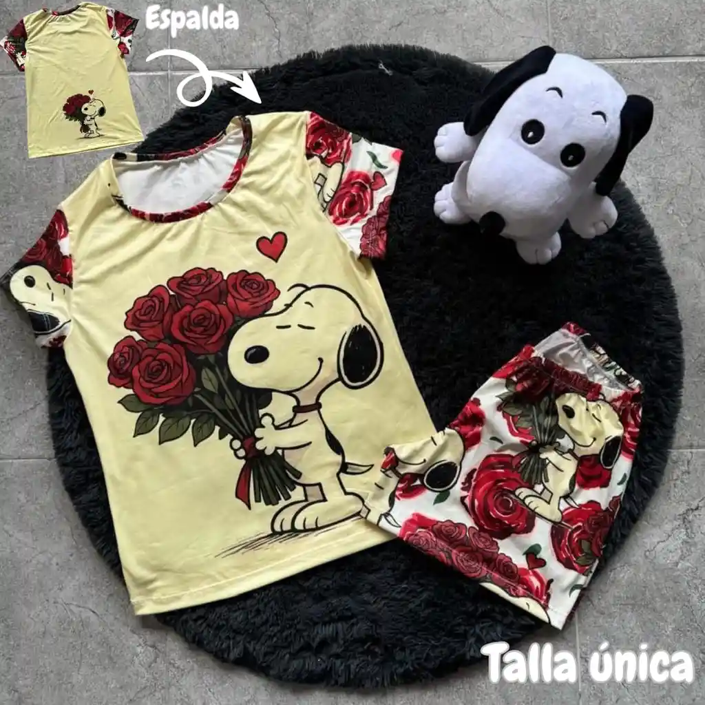 Hermosa Pijama para Dama dos piezas short y camisa manga de excelente calidad. Blusa de manga, TALLA UNICA sede las tallas SML Largo 53, Ancho 40 Short. Largo 33, ancho de pierna 30cm