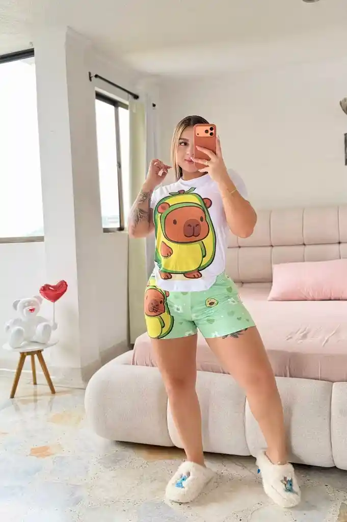 Hermosa Pijama para Dama 2 piezas, short y camiseta manga corta de excelente calidad piel durazno. en TALLA única sede desde la talla SML.