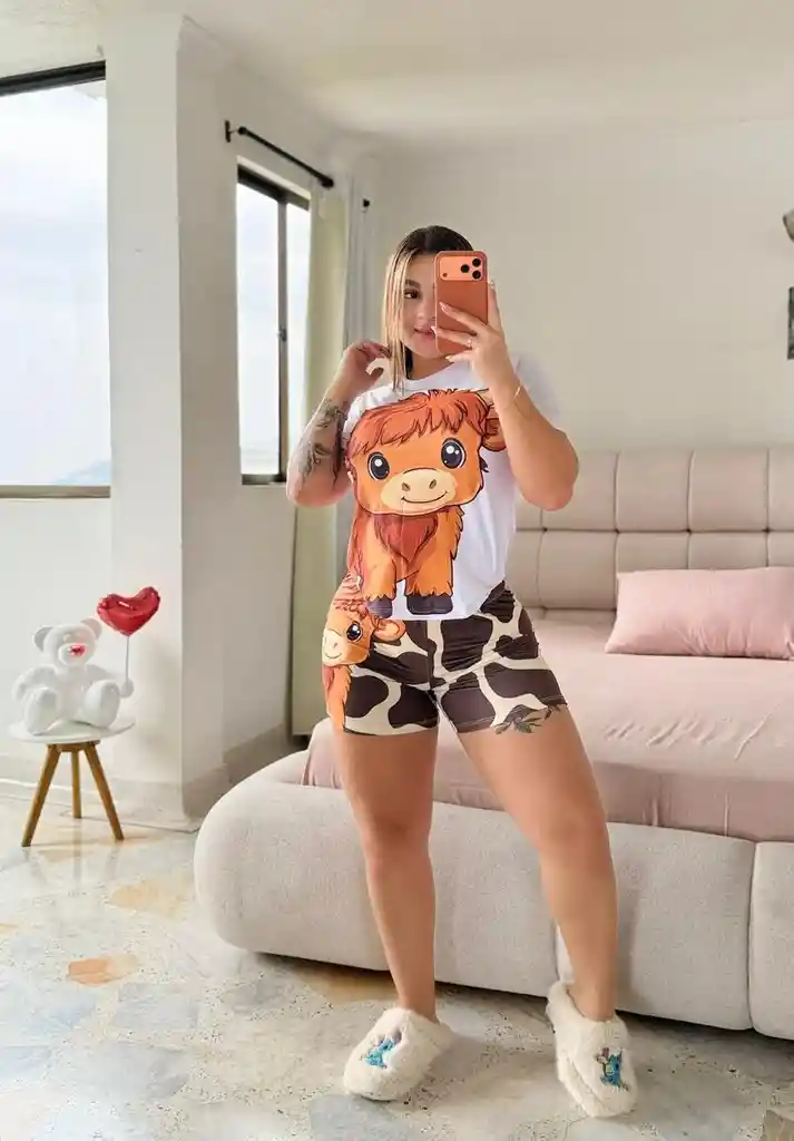Hermosa Pijama para Dama 2 piezas, short y camiseta manga corta de excelente calidad piel durazno. en TALLA única sede desde la talla SML.