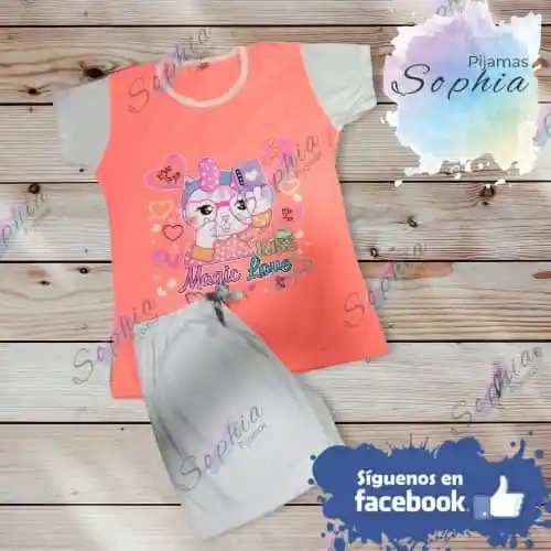 Hermosa Pijama Luminosa para niña de short manga corta en talla 16