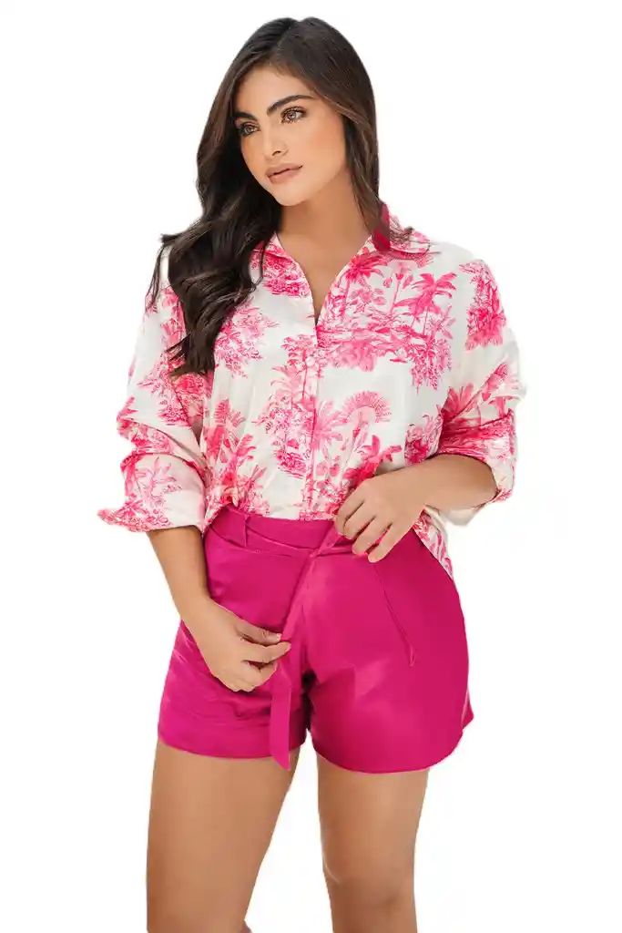 PIJAMA Camisa estampada manga larga y short unicolor en satín