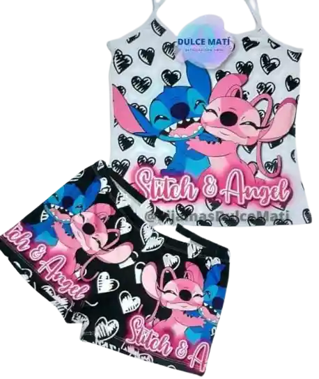 Pijama Short Stitch - Piel De Durazno, talla unida, sede hasta la talla L