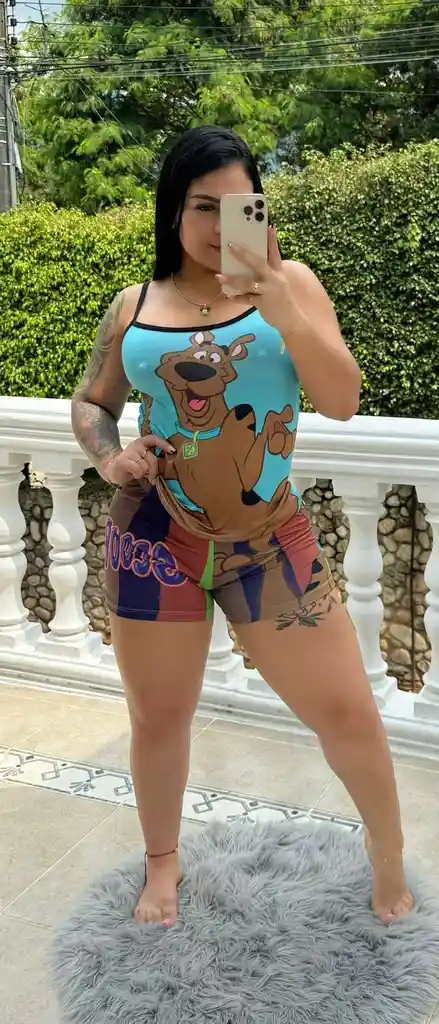 Hermosa Pijama Short Tiras Dama en material Piel durazno full color talla Única. sede desde la talla S M y L.
