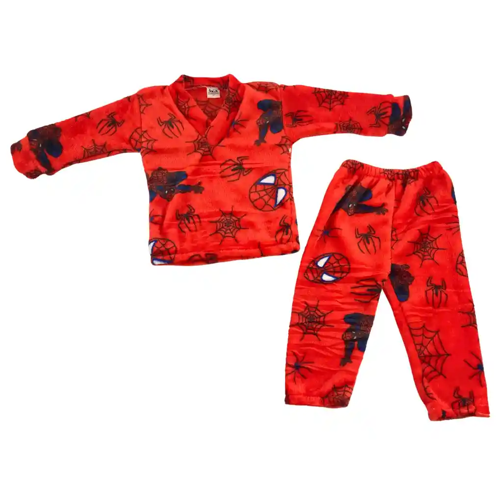Talla 6-12 Meses, ijama polar para bebé en talla 6-12 meses, ideal para mantener a tu pequeño cómodo y abrigado durante las noches frías. Conjunto de dos piezas en tela suave tipo polar, con diseño llamativo estilo superhéroe araña, perfecto para el descanso diario. Incluye: 1 buzo de manga larga en tela polar 1 pantalón largo con pretina elástica Material suave, cálido y cómodo Diseño estampado resistente al lavado Ideal para dormir o estar en casa Talla: 6-12 meses