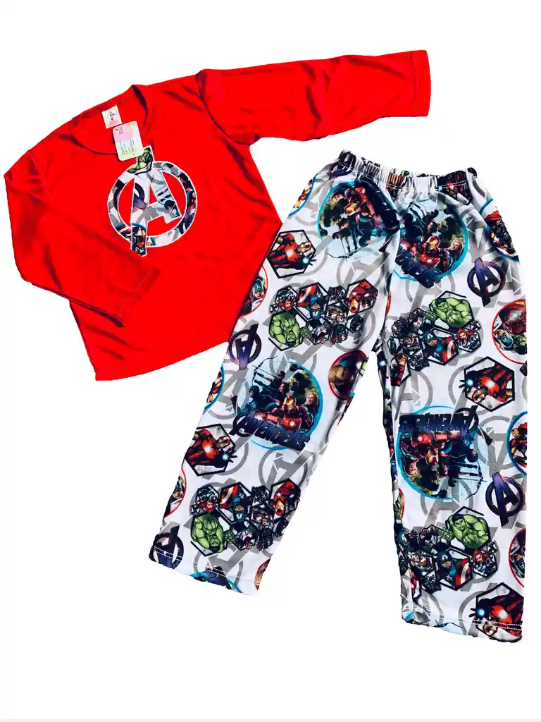 Pijamas dos piezas para Niños motivo advenger talla 4 Medida de largo del pantalon 62Cm Suaves y cómodas