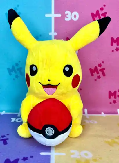 Pikachu Pokebola medidas 28cm de alto con orejas 16cm de ancho suave al tacto tierno