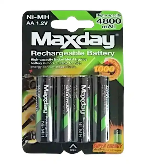Pila Batería Recargable AA x4 Unidades 4800mAh 1.2V Ni-MH Recargable Al ser recargables tienen una mayor duración y generan menos residuos. Así, tus dispositivos tendrán siempre energía para funcionar sin que tengas que preocuparte por ello, ¡olvídate de comprar pilas a menudo! Con una capacidad de 4800 mAh, estas pilas ofrecen un rendimiento excepcional, ideales para dispositivos que requieren un uso prolongado. Su composición de Ni-MH asegura una carga eficiente y una larga vida útil, con un tiempo máximo de retención de carga de hasta 10 años. Su diseño cilíndrico y tamaño AA las hace compatibles con una amplia variedad de dispositivos, como linternas. Además, su voltaje nominal de 1.2V garantiza un funcionamiento óptimo. Sin mercurio, estas pilas son una opción ecológica y segura, contribuyendo a un futuro más sostenible. Con un peso de 182 g y dimensiones compactas, son fáciles de almacenar y transportar.