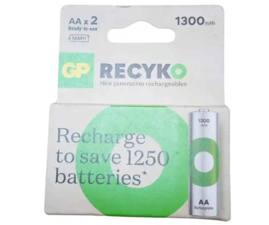pila recargable AA por paquete por 2 unidades. Capacidad 1300MAH. Marca GP
