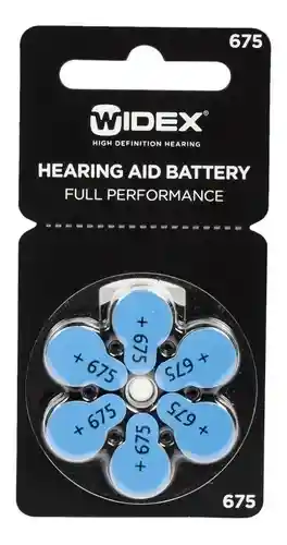 "Pila para dispositivos auditivos, blíster con 6 pilas Referencias: PR675, PR44, 675, Blue, AC675, ZA675"