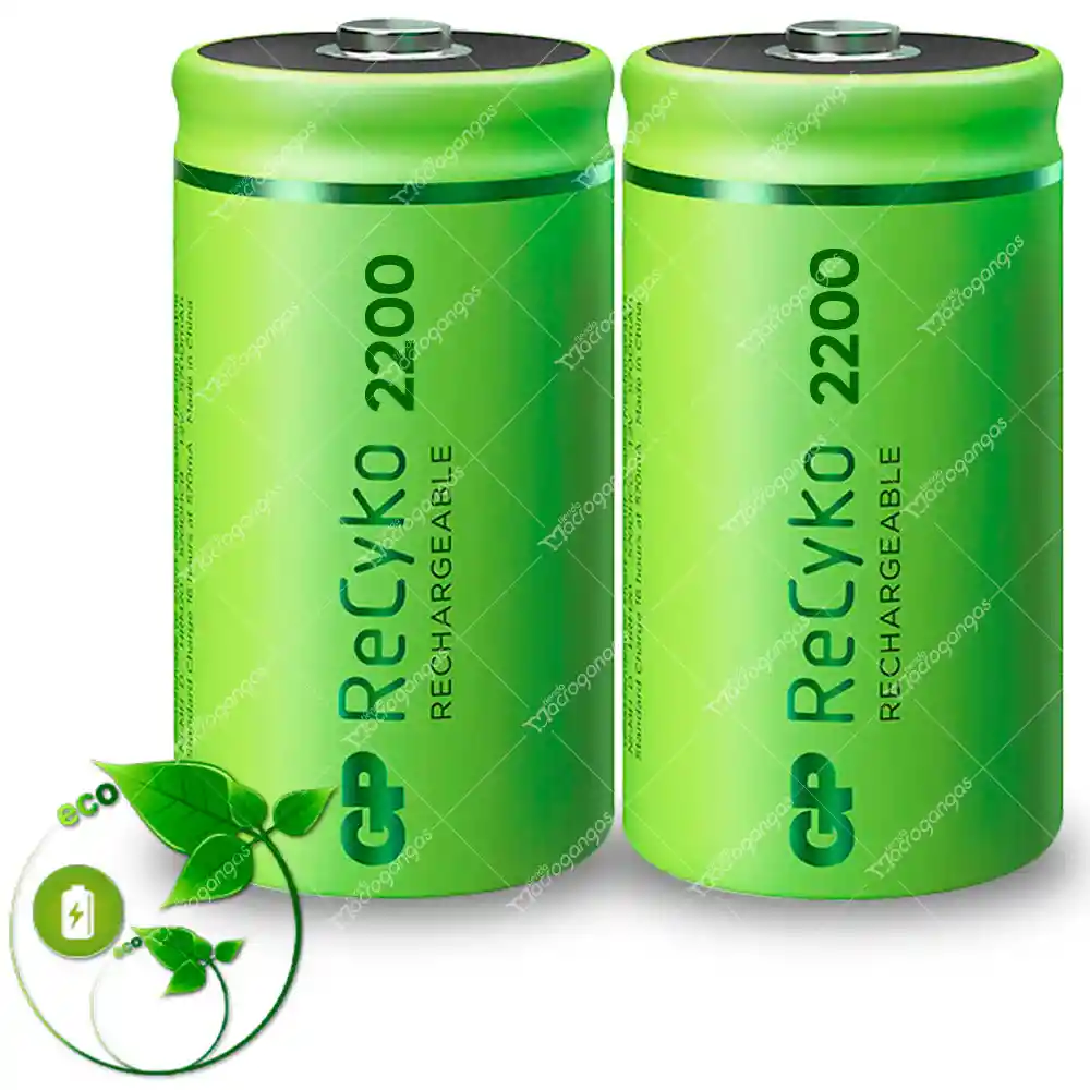 PILAS TIPO D RECARGABLES 2200MAH 1,2V GP BLISTER X2 ¡100% comprometidos con tu poder! ¿Estás cansado de tener que comprar baterías una y otra vez? ¿Encuentra esto tan derrochador como nosotros? ¿También quieres hacer un cambio respetuoso con el medio ambiente? Cuando compre baterías NiMH recargables de tamaño D de GP Batteries, no tendrá que comprar baterías nuevas en el corto plazo. Estas baterías vienen en un paquete de 2 y se pueden recargar más de cien veces. Esto significa que no tendrá que hacer más carreras al taller cuando su linterna, altavoz o el juguete de su hijo se apague. Estas pilas duran mucho más que las pilas alcalinas normales y también permanecen cargadas cuando no están en uso. Baterías TIPO D recargables de NiMH marca GP Paquete de 2 unidades Otras referencias: D, E95, HR20, LR20 Duran mucho más que las pilas alcalinas Garantizada para más de 100 cargas Ahorra en costes y respetuoso con el medio ambiente Permanece cargado cuando no está en uso CONTENIDO DEL EMPAQUE 2x Baterías recargables Tipo D marca GP 2200mah en blíster sellado