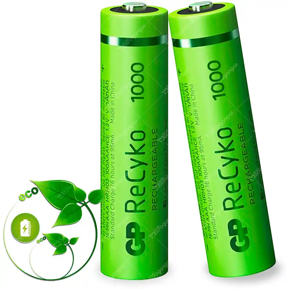 PILAS BATERÍAS RECARGABLES GP AAA 950mAh Ni-MH de 1.2 V x2 ORIGINALES PRECARGADAS Las baterías recargables GP son potentes y adecuadas para una amplia gama de aplicaciones. Estos modelos se mantienen su carga con el tiempo y se pueden recargar cientos de veces. GP Batteries tiene una gama amplia para garantizar una solución adecuada para cada momento. • Producto nuevo y calidad garantizada. • Híbrido de poder estable. • Reemplazo exacto para la batería de tamaño AAA de 1.5v de carbón estándar en todos los dispositivos. • Se puede cargar rápidamente con cualquier cargador, cargadores inteligentes o cargadores universales. • Excelente rendimiento en cámaras digitales, reproductores de CD, juguetes de control remoto, detectores de metales, linternas de bolsillo, PDAs Palm pilotos, controles de video juegos, juguetes para niños, etc. • Tensión: 1.2 v. • Química: Ni-MH (níquel e hidruro metálico). •Tiempos recargables: hasta 1000 veces. •Tamaño: AAA Marca: GP Batteries Modelo: GP950AAA Nombre del modelo ReCyko + 1000 Series Peso del producto: 26,8 g Descripción de la batería: Recargable Carga eléctrica de la batería: 950 mAh Composición de la pila de la batería: NiMH PAQUETE INCLUYE: 2x Pilas Baterías Recargables GP AAA de 950 mAh en blíster.