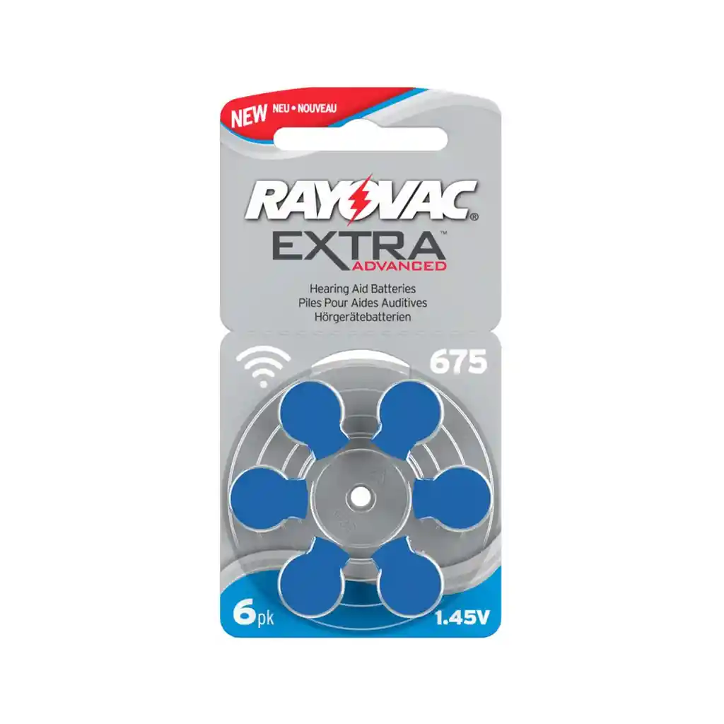 Pilas para dispositivos auditivos, marca Rayovac, Referencia 675 Pr44. El blíster trae 6 Unds.