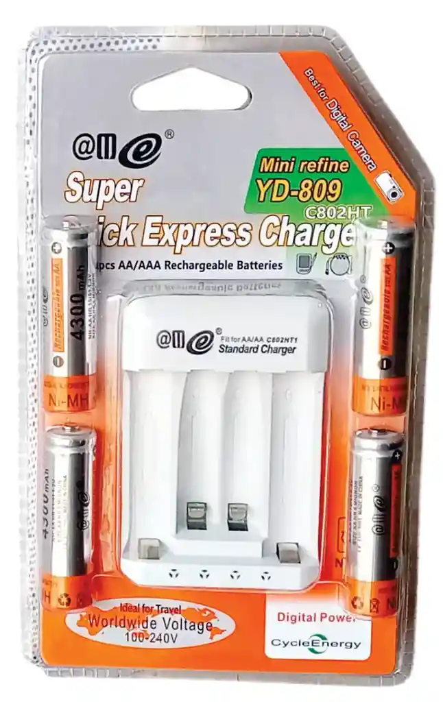 Contenido: Incluye un cargador de pared y 4 pilas recargables AA Capacidad de las baterías: 4300 mAh. Compatibilidad de voltaje: Funciona con voltaje mundial de 100-240V, ideal para viajes. Tipo de batería: Pilas Ni-MH (Níquel-metal hidruro).