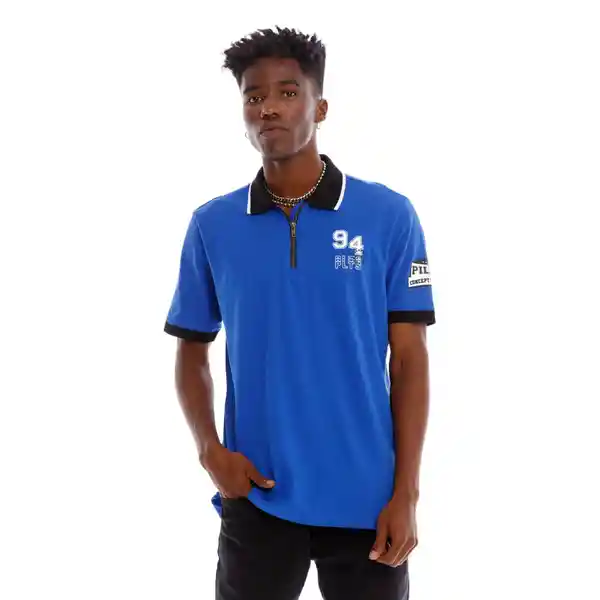 Pilatos Polo Manga Corta Azul Cuello Negro L