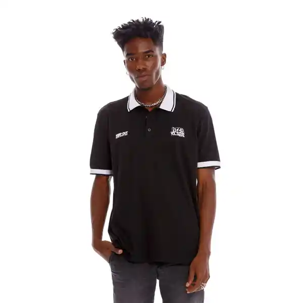 Pilatos Polo Manga Corta Negra Cuello Blanco M
