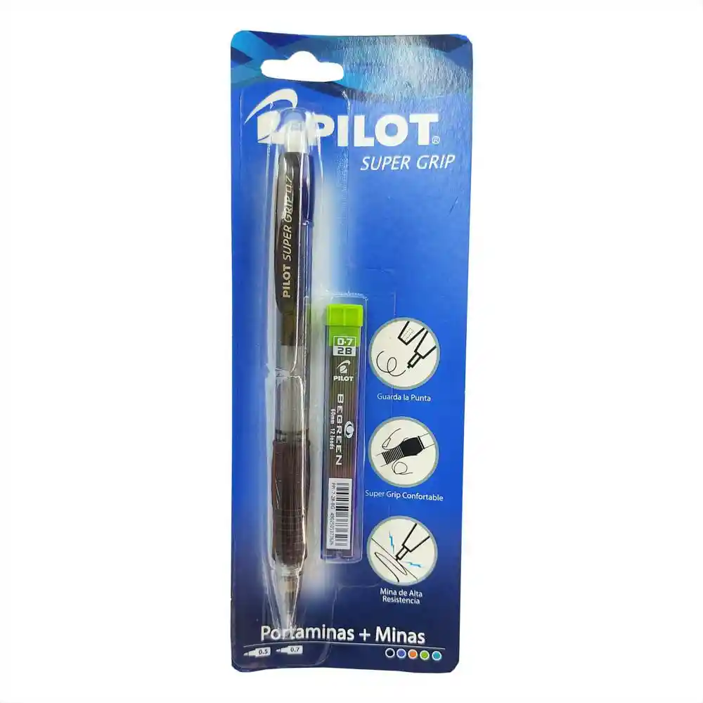 Set Contiene: Portaminas Pilot Super Grip 0.7 mm 1 Und + Minas 2B Blister. Portaminas de Alta Calidad. - Con Sistema de Extracción de Minas: Pulsar. Con Grip Confortable. Puntera Metálica Retráctil. Minas de 0.7 mm. Superficies de Escritura: Papel.