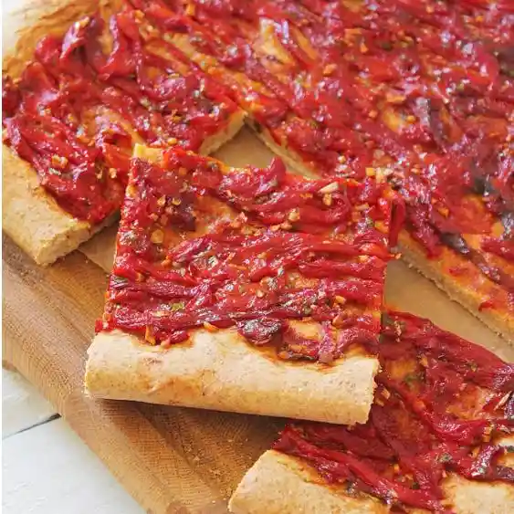 Receta de tradición familiar. Pimentón pelado y al asado, conservado en aceite, aderezado con ajo, vinagre, condimentos y un toque dulce, es cortado finamente, ideal para pasabocas, ensaladas, carnes o salsas.