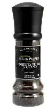 Pimienta negra con molino para mesa.