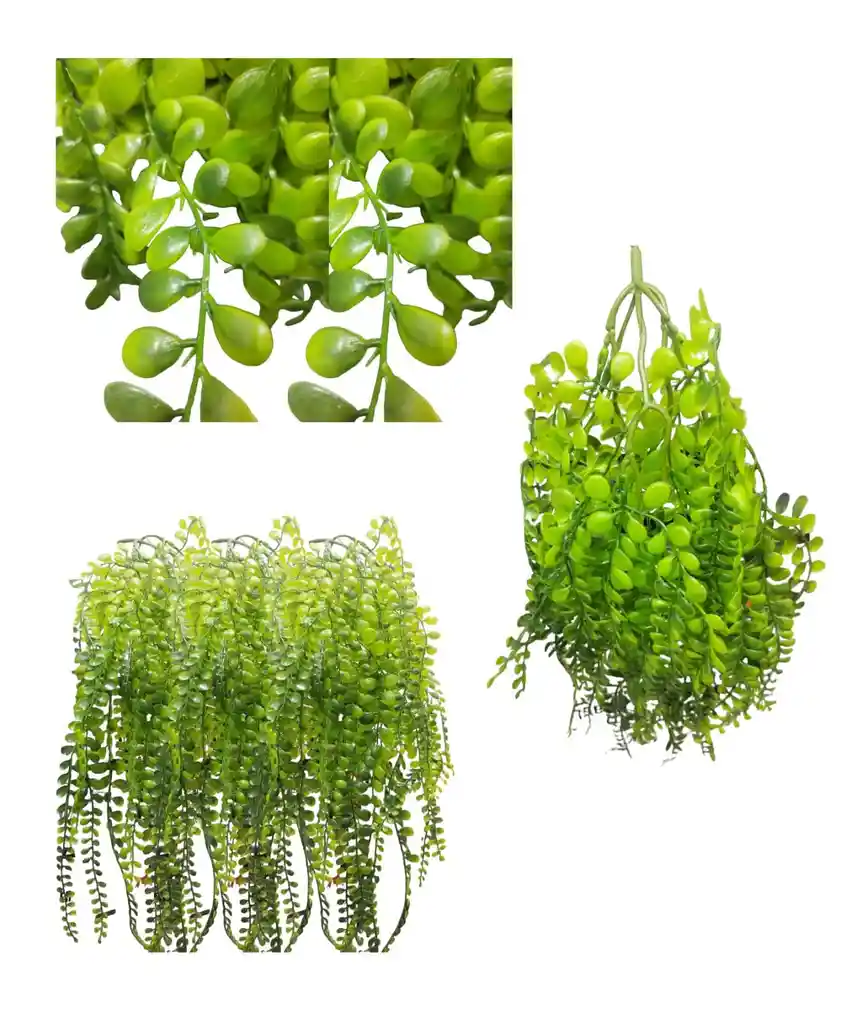 Te gustan las plantas, pero no tienes tiempo o espacio para cuidarlas? No te preocupes, tenemos la solución perfecta para ti: una planta colgante artificial que parece de verdad. Esta planta tiene unas hojas verdes y carnosas que cuelgan con elegancia, creando un ambiente natural y relajante en tu hogar u oficina. Su color verde intenso y vibrante contrasta con el fondo blanco de las fotos, atrayendo todas las miradas. Además, esta planta no necesita agua ni luz, y durará mucho tiempo sin perder su belleza. Es una planta ideal para decorar cualquier espacio interior con un toque de naturaleza y frescura. No lo dudes más y hazte con esta planta colgante artificial, ¡te encantará! 🌿