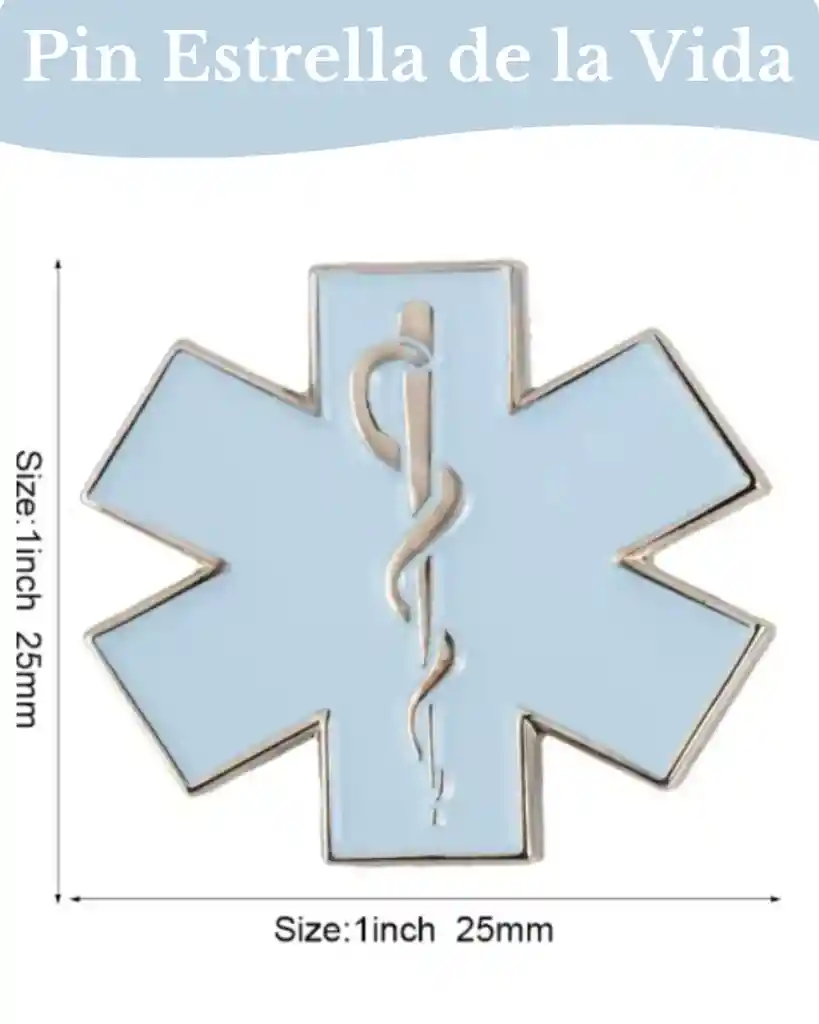 Este artículo es un pin metálico que representa la Estrella de la Vida, el símbolo universalmente reconocido de los servicios de emergencia médica (EMS). Aquí tienes los detalles principales: Diseño: Se trata de una estrella de seis puntas, cada una con un esmalte de un color distinto, creando un diseño multicolor. En el centro, sobrepuesto, se encuentra el Bastón de Asclepio (la vara con una serpiente enroscada), el símbolo clásico de la medicina. Dimensiones: El pin es de forma cuadrada en su proyección, con un tamaño de 1 pulgada (25 mm) tanto de alto como de ancho. Estética: A diferencia de la Estrella de la Vida tradicional (que suele ser de un solo color, generalmente azul), esta versión utiliza una paleta diversa que incluye tonos como rojo, naranja, amarillo, verde, azul oscuro y púrpura. Uso: Es un accesorio de solapa, ideal para personal médico, paramédicos, técnicos en emergencias o personas interesadas en reconocer y honrar la labor de los servicios de emergencia.