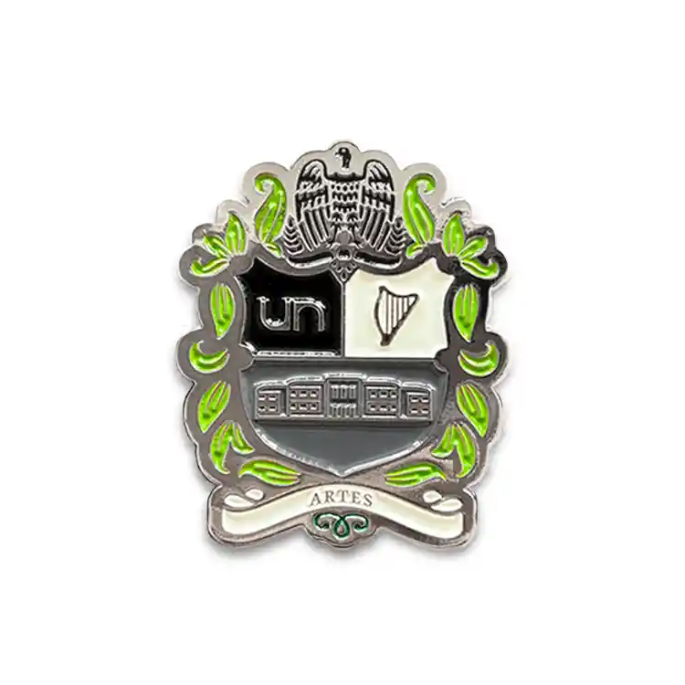 Pin metálico inspirado en la Facultad de Artes de la Universidad Nacional de Colombia, perfecto para usar en chaquetas, mochilas, camisas o como artículo de colección. Excelente opción para miembros de la comunidad universitaria como estudiantes, egresados, funcionarios y coleccionistas. Viene acompañado por un hermoso cofre de madera, si lo piensas como un elegante obsequio para esa persona tan especial que acaba de ingresar, está estudiando o ya se graduó de la universidad. Si perteneces a alguna de las siguientes carreras, este pin es para ti: - Arquitectura - Artes plásticas - Cine y televisión - Diseño gráfico - Diseño industrial - Música - Música instrumental