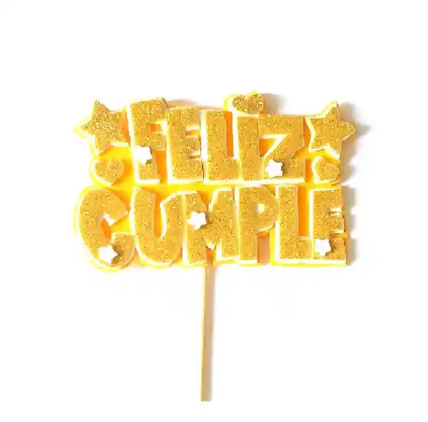 Pin hablador photocall feliz cumpleaños en foamy o fomi escarchado en colores dorado. Tamaño aprox 14cm x 9cm