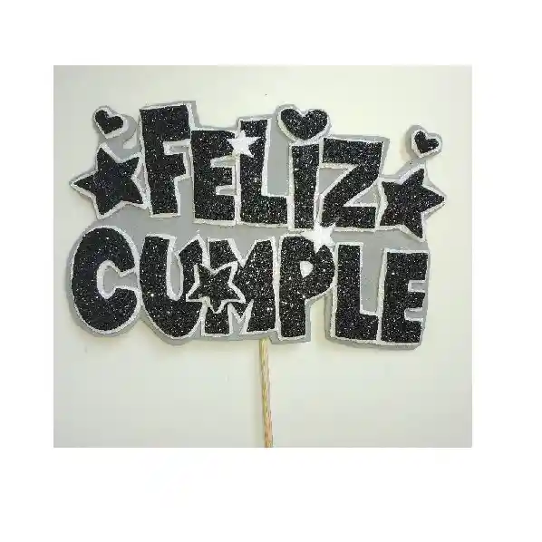 Pin hablador photocall feliz cumpleaños en foamy o fomi escarchado en colores negro y gris. Tamaño aprox 14cm x 9cm