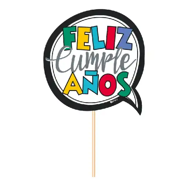 Pin hablador photocall feliz cumpleaños diseño unisex negro con palito de bambú. Tamaño aprox 9cm x 9cm