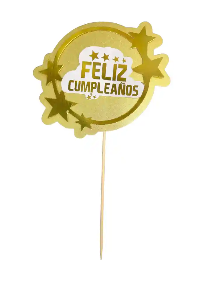 Toper Torta Feliz Cumpleaños 26*16 Cms,Color Dorado Para Cumpleaños, Celebraciones, Decoraciones, Anchetas, Detalles