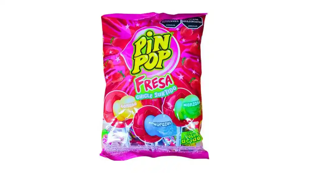 El Pin Pop sabor fresa con chicle en presentación surtida de 24 unidades es un caramelo duro tipo chupeta con centro de chicle de sabor frutal. Cada pieza viene envuelta individualmente, lo que facilita su transporte y permite disfrutarla sin necesidad de porcionarla. Su combinación de un exterior dulce con una textura masticable en el centro lo convierte en un snack ideal para compartir, regalar o disfrutar en cualquier momento del día. Se recomienda conservarlo en un lugar fresco y seco para mantener su frescura y sabor.