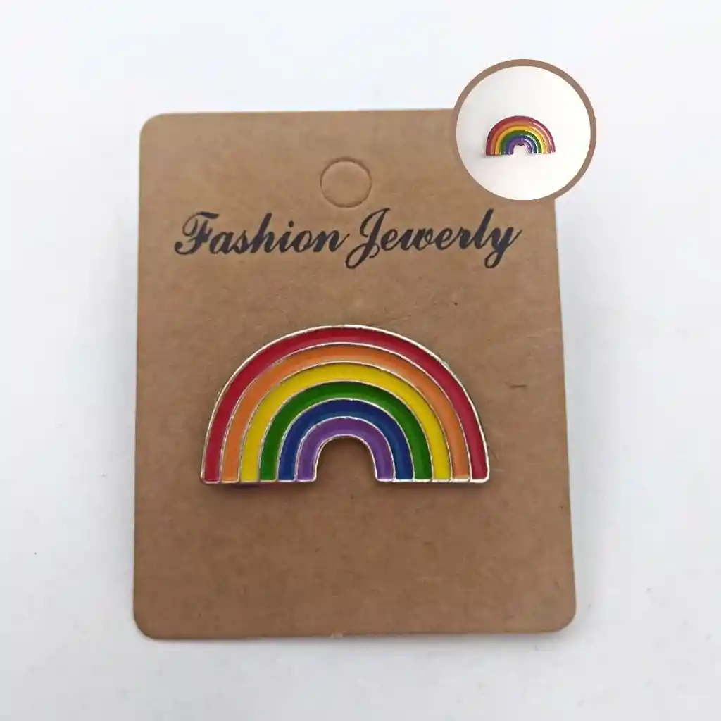 Pin o prendedor Diseño: Un arcoiris Material: Metal Dimensiones: 1.7 cm x 3.1 cm Peso :4.4 gramos Genero: Unisex Recomendaciones: No aplicar perfumes ni cremas directamente, no mojarlos, no dejarlos caer y procurar limpiarlos para retirar suciedad.