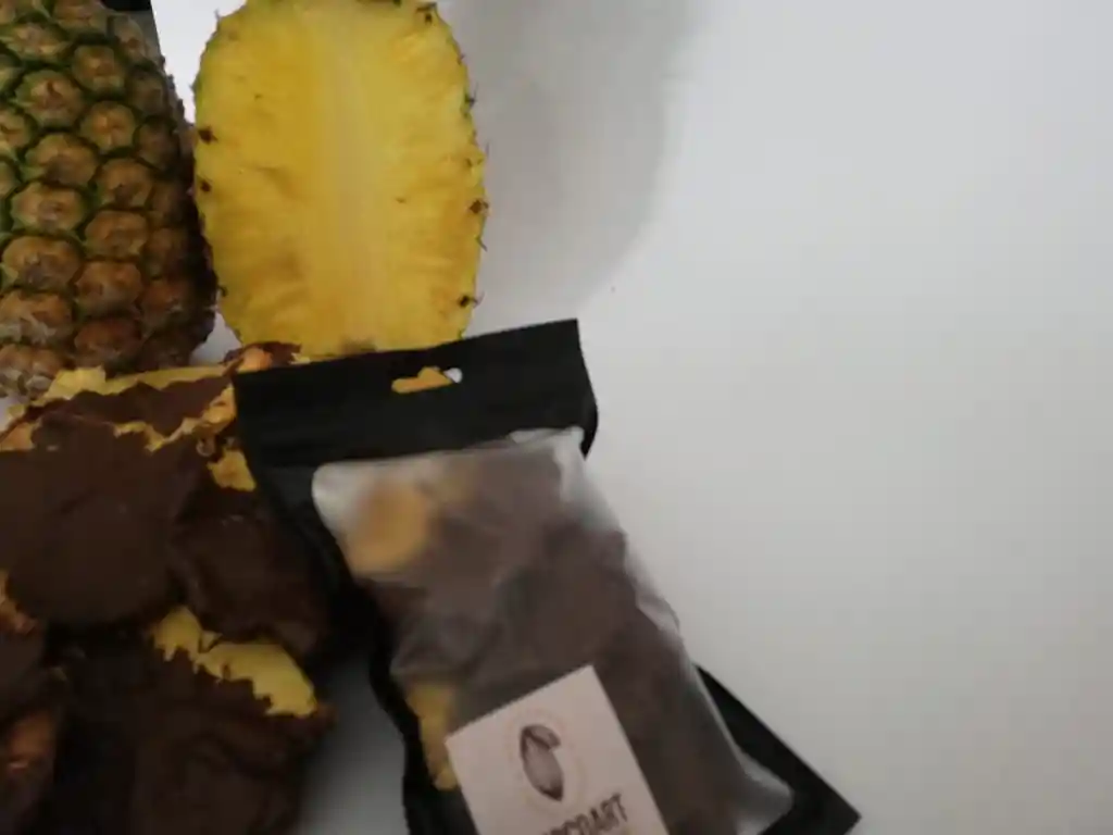 Piña deshidratada cubierta con chocolate dulce