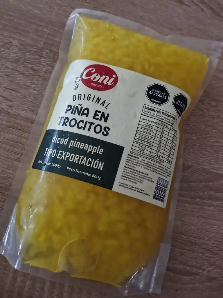 CONTIENE PIÑA,AZUCAR,AGUA,ACIDULANTE CONSERVESE EN LUGAR FRESCO Y SECO MANTENGASE REFRIGERADO DESPUES DE ABIERTO