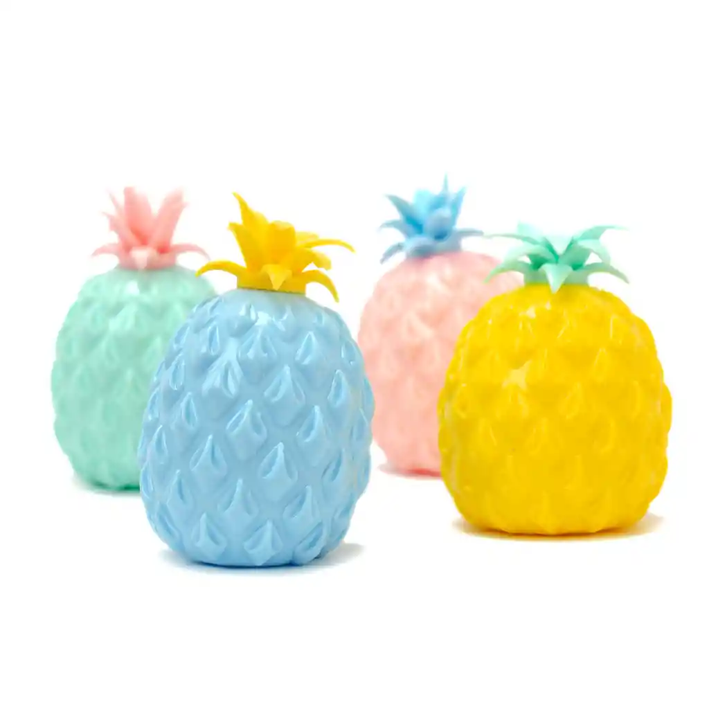 Squishy en forma de piñas con bolitas de gel. Este divertido juguete antiestrés, es ideal como juguete de compresión. Está diseñado con material suave, blando y resistente para que puedas pasar horas jugando con el. Su tamaño es práctico para que lo puedas usar en cualquier lugar y en el momento que más lo necesitas para ayudarte a liberar tensiones acumuladas o simplemente como medio de entretención. Evita usarlo con presión muy fuerte ya que se puede reventar. Sus bolitas de gel internas te darán una sensación de relajación inigualable. Juguete usado también para rehabilitaciones de movimiento en las manos.