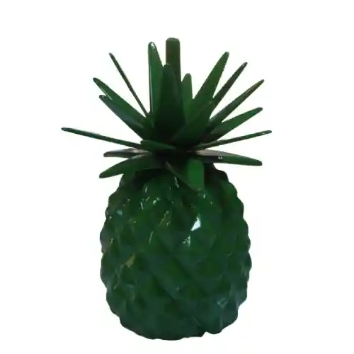 Por Yoli Arrazola. Esta piña escultórica fue tallada manualmente por artesanos de la isla Barú. Para su fabricación se utilizó ceiba y cedro reutilizados