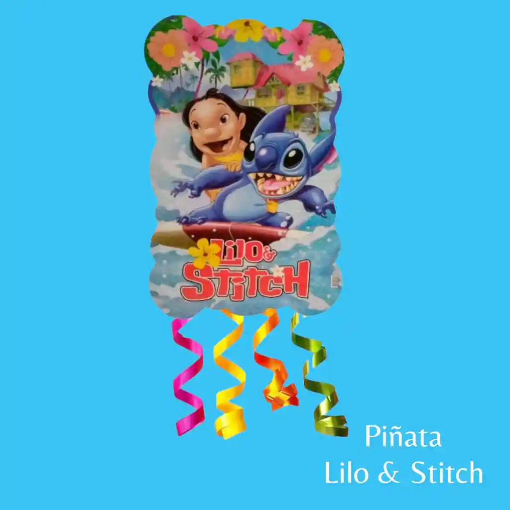 Piñata Lilo Stitch 46x32cm Divertida Piñata que podrás rellenar con Dulces y Juguetes. Características: Material: Cartón Medidas: Alto: 46 Cm Ancho: 30 Cm