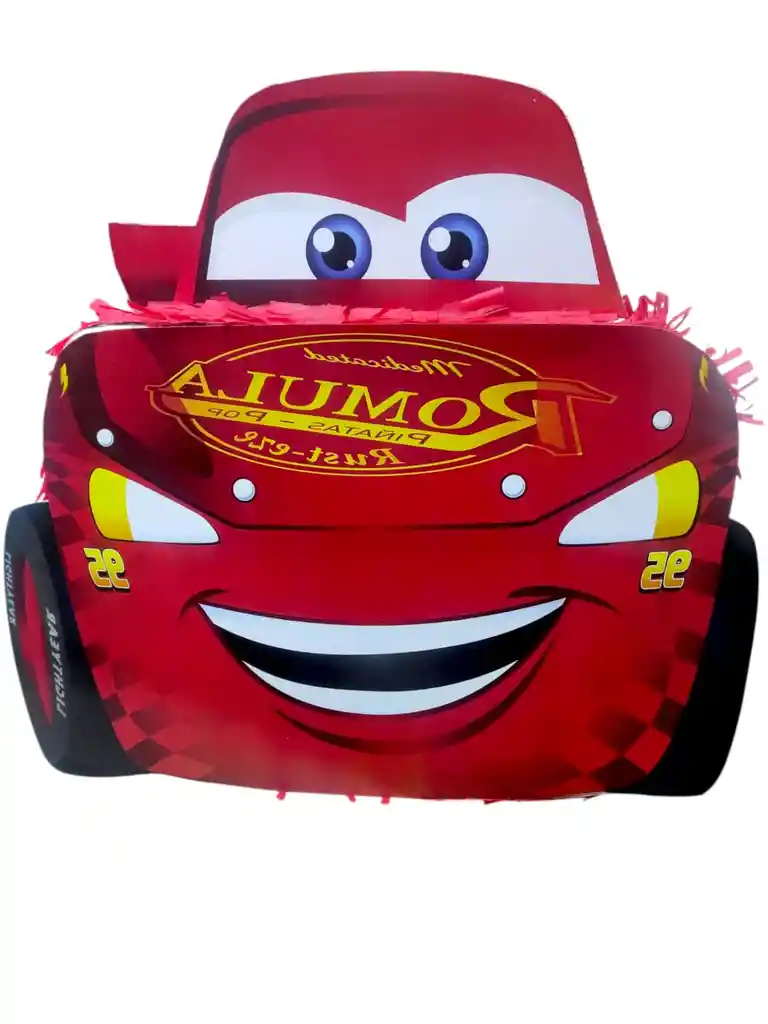 piñata pop de carro rayo mc queen tamaño : 45 cm de alto 46 cm de ancho materiales: papel, carton, icopor y cinta colores rojo igual como las fotos si deseas algo adicional indicanos y con gusto te colaboramos