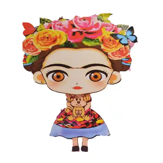 Piñata Pop Frida - Mexicana diseño en color Multicolor materiales de papel y carton alto de 55 cm ancho de 57 cm aproximados trae cuerda para colgar incluye 1 paquete de papel picado de colores NO INCLUYE RELLENO si deseas algo adicional indícanos y con gusto te colaboramos