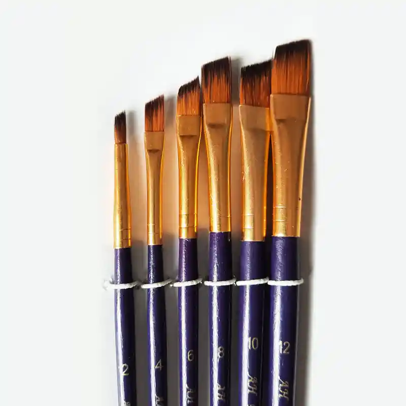 Este pincel tiene un nivel de cerdas desde cortas hasta de mayor longitud, funciona muy bien para crear efectos de degradado. Con muchas técnicas de uso con este pincel se logra efectos muy variados donde se hacen curvas cambiantes con gran facilidad. El cuerpo está hecho de madera color azul, que le dan una gran belleza. con cuerpo delgado y largo que ofrece una gran hagilidad en los trazos, permitiendo dar pinceladas rápidas y con gran continuidad, así genera una ritmo de pintura veloz. El paquete de pinceles contiene los tamaños de pinceles: Angular 2, 4, 6, 8, 10, 12