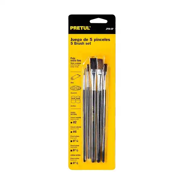 Juego de pinceles en blíster con 5 piezas, PRETUL Garantizado contra defectos de fabricación o mano de obra. La garantía se puede hacer válida con cualquier distribuidor de TRUPER