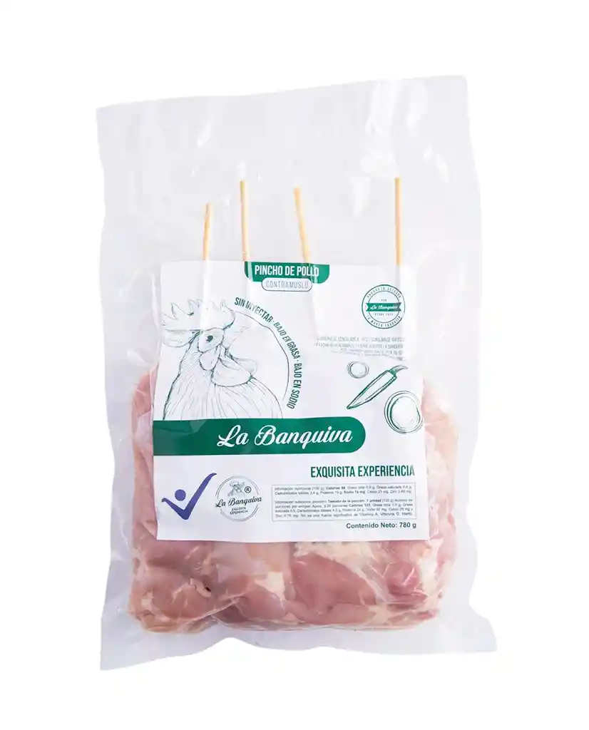 Pinchos de Pollo Contramuslo (Sin Inyección) Prácticas brochetas de pollo a base de contramuslo. Paquete de 4 unidades.Peso 700 gr - 800 gr • Bajo en grasa • Bajo en sodio • Los pinchos de pollo contramuslo (sin inyección) son una opción jugosa y sabrosa para diversas ocasiones